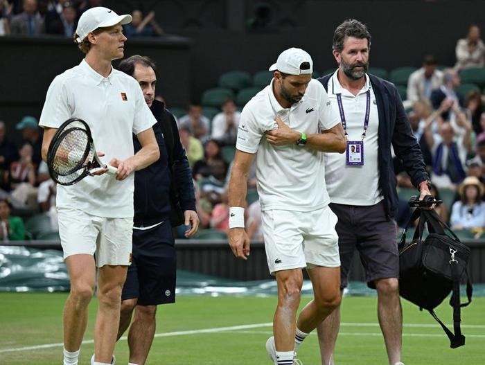 但是,谁也没有想到,就在保加利亚帅哥离迈向胜利终点仅差一盘胜利的情况下,意外发生的胸部伤病,将这位铁铮铮的汉子轰倒在地,就此让辛纳逃过了一劫,让所有人无比震惊。
